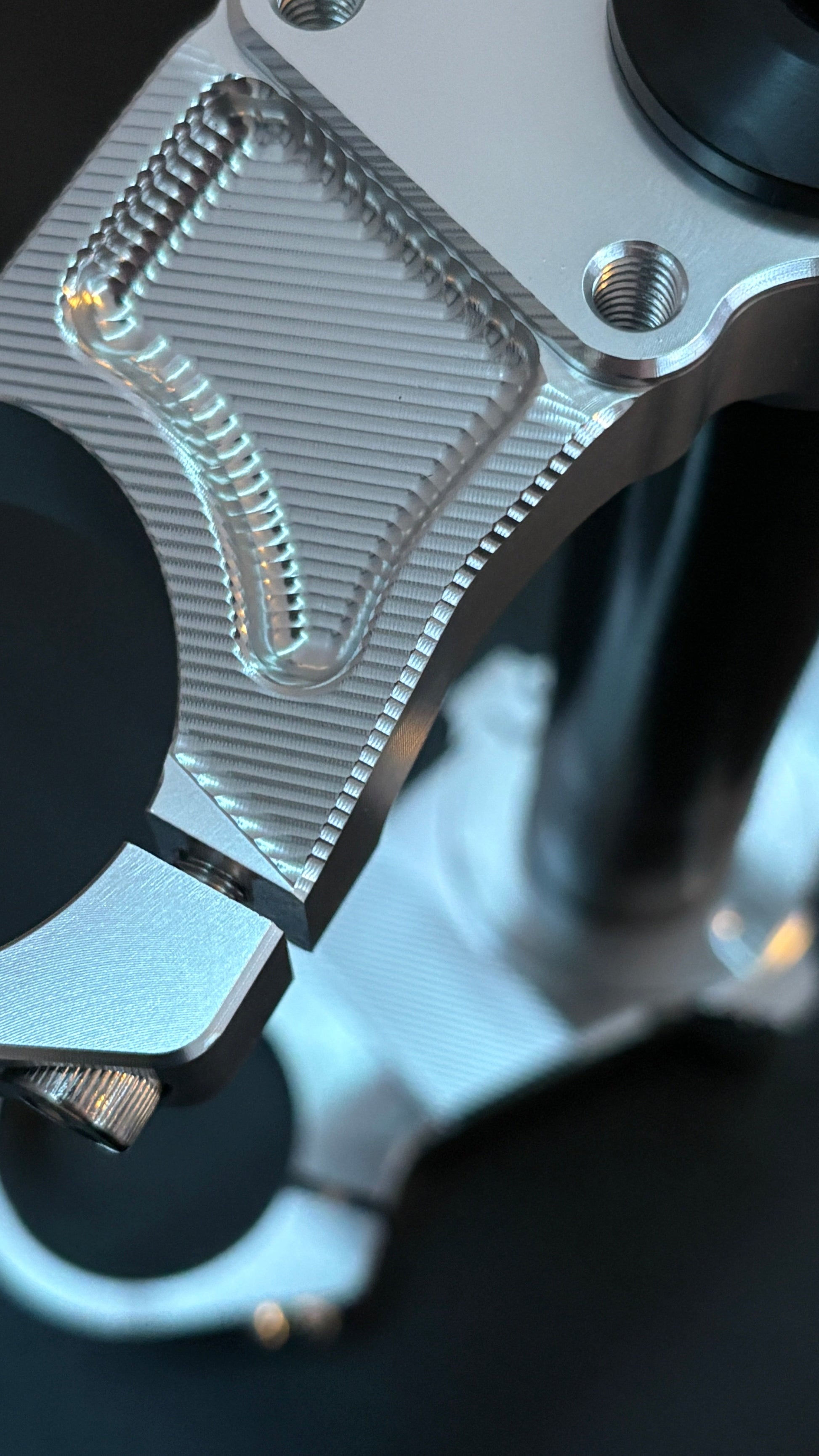 Engineered exclusively for stock Surron KKE forks, this upgraded triple tree combines billet 6061 and 7075 aluminum to enhance durability and optimize steering geometry. Featuring a locking stem mechanism, it eliminates the need for a starter button or stem lock. Its drop crown design elevates the front end, delivering a more aggressive riding stance. Note that this component is compatible only with standard Surron KKE forks and does not fit models like Eride/Talaria or certain thicker-diameter forks such as those found on the Vetra.